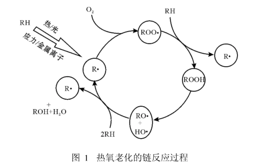 聚合物的老化是一種自動氧化反應,目前最常用的方法是在高分子聚合物加入抗氧劑,防止或阻緩高分子聚合物氧化工程。它可以捕捉活性游離基生成非活性游離基,或者分解氧化過程中的聚合物,使其終止鏈鎖反應。